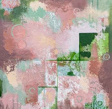 Botanical Recollections is a series of abstract works inspired by the memory of gardens, especially roses. Through luminous colors, layered textures, and subtle symbols, each painting evokes the fragrance of time remembered—delicate yet enduring. The collection creates a contemplative garden where memory and nature meet, offering viewers a quiet invitation to pause and reflect. The viewer is invited to pause, to wander slowly, and to discover what arises in the dialogue between past and present, beauty and time, nature and reflection.